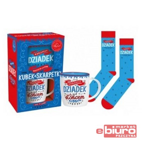 Podaruj dziadkowi wyjątkowy, prezent - zestaw LA VIVA - kubek i skarpetki. Ceramiczny kubek w kolorze białym z napisem: "NAJLEPSZY DZIADEK pod słońcem". Skarpetki w kolorze niebieskim w czarne gwiazdki z czerwonymi: palcami, piętą i ściągaczem. Na skarpetkach znajduje się napis - "NAJLEPSZY DZIADEK". Skarpetki wykonane są z bawełny (75%), polyestru (23%) i elastanu (2%). Całość zapakowana jest w ładny kartonik. Ten zestaw będzie ładnym prezentem nie tylko na Dzień DZIADKA.