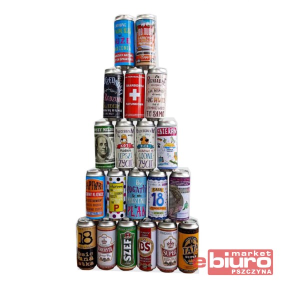 Wyjątkowa, kolorowa skarbonka w formie metalowej puszki z małym otworem na górze do wrzucania pieniędzy i grafiką na całej powierzchni. Będzie fajnym prezentem dla każdego przyszłego milionera.