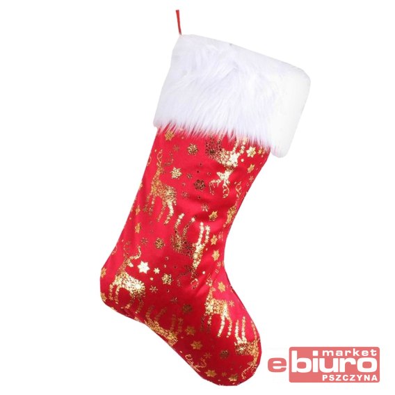 SKARPETA ŚWIĄTECZNA CZERWONA W ZŁOTE RENIFERY GODA