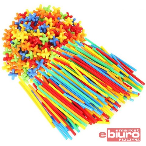 Zestaw klocków w kształcie kolorowych słomek wykonanych z plastiku, które świetnie pobudzają wyobraźnię i kreatywność dziecka.