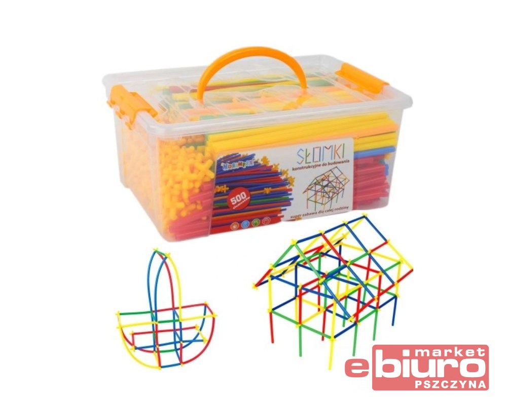 Klocki słomkowe do łączenia, aż 500 elementów w różnych kolorach.