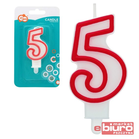 ŚWIECZKA CYFERKA "5" CZERWONY KONTUR 7CM GODAN