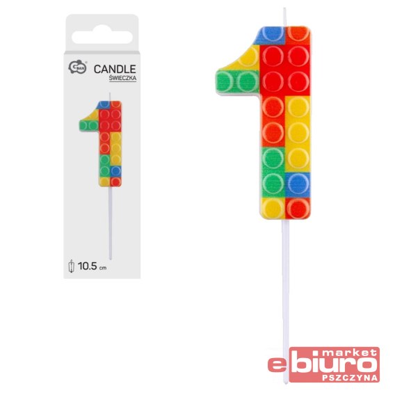 ŚWIECZKA PIKER KLOCKI CYFRA 1 WIELOKOL. 10,5X3,5CM