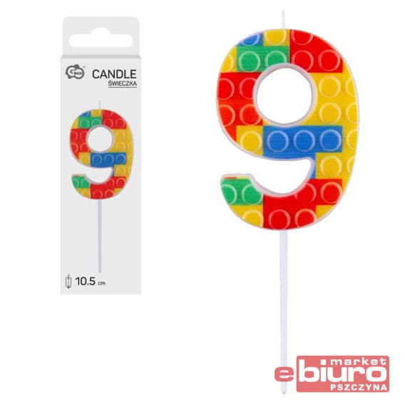 ŚWIECZKA PIKER KLOCKI CYFRA 9 WIELOKOL. 10,5X3,5CM