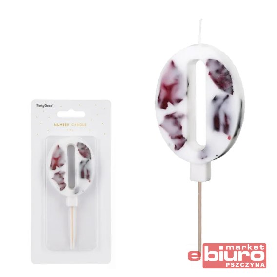 ŚWIECZKA URODZ. CYFRA "0" BIAŁA Z PŁATKAMI KWIATÓW