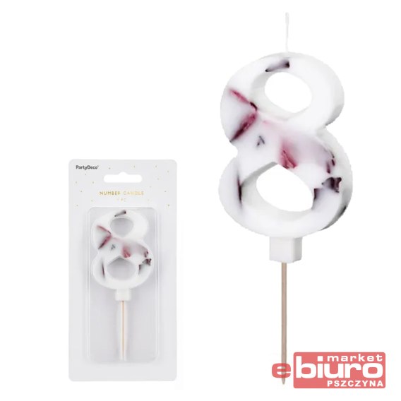 ŚWIECZKA URODZ. CYFRA "8" BIAŁA Z PŁATKAMI KWIATÓW