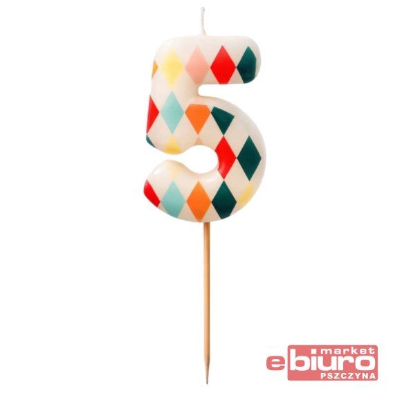 ŚWIECZKA URODZINOWA ROMBY CYFERKA 5 PARTYDRCO