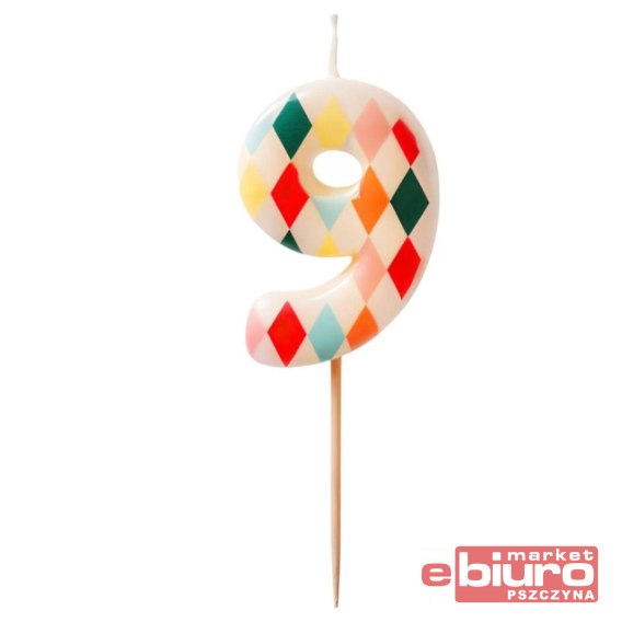 ŚWIECZKA URODZINOWA ROMBY CYFERKA 9 PARTYDRCO