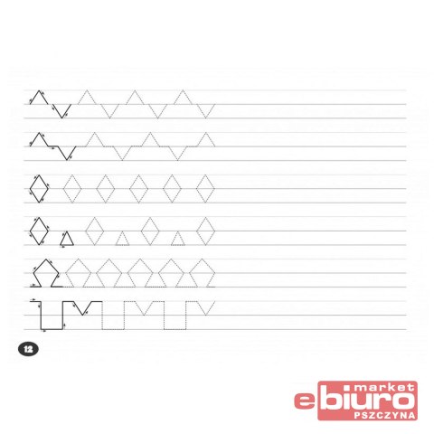 Zadaniem dziecka jest przyjrzenie się wzorowi, poprawienie go po śladzie, następnie po linii przerywanej, a w końcu samodzielne jego odtworzenie.