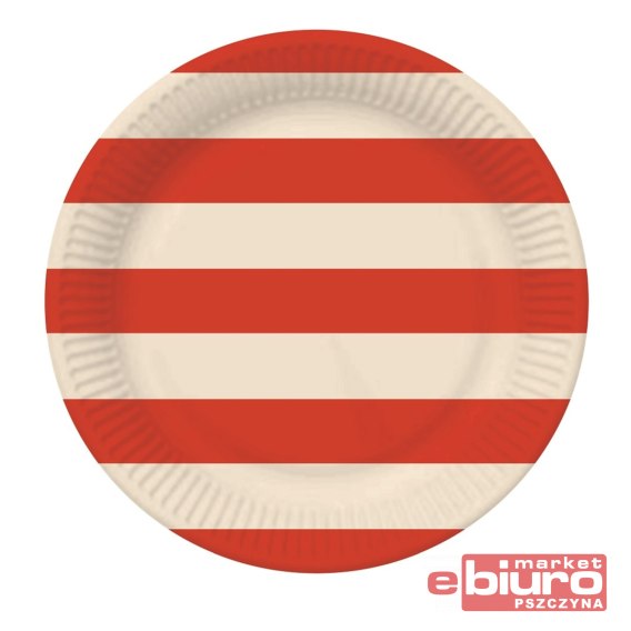 • TALERZYKI PAPIEROWE PASKI CZERW-BEŻ 18CM 6SZT GODA