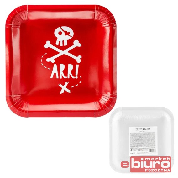 TALERZYKI PIRACI CZERWONY 20X20CM A'6 PARTYDECO