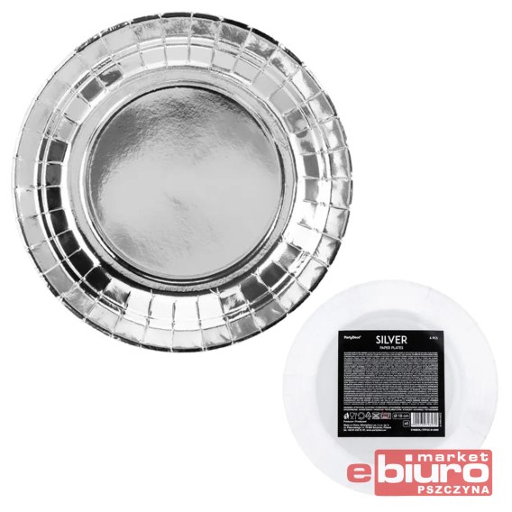 Talerzyki papierowe srebrne średnica 18 cm 6 szt. PartyDeco.