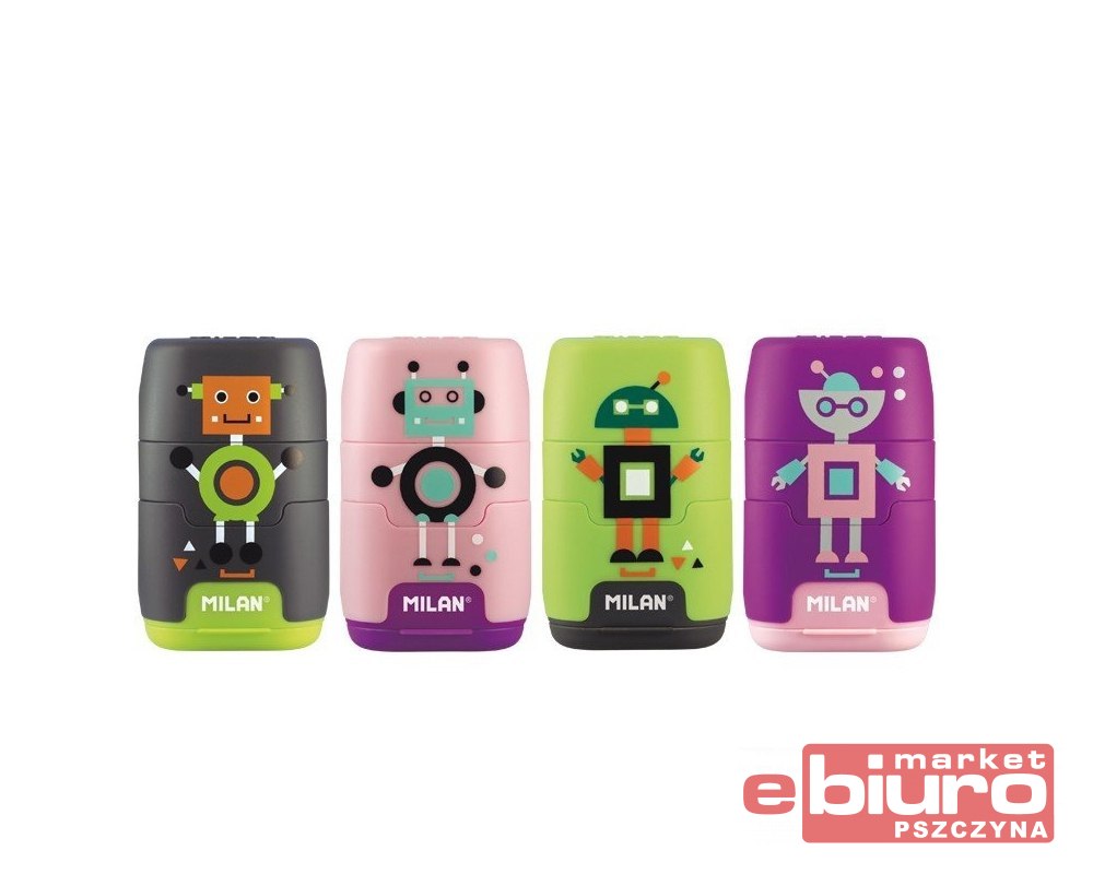 Połączenie gumki i podwójnej temperówki. Kompaktowy design, edycja specjalna Happy Bots. Temperówka ma wytrzymałe stalowe ostrze, dzięki czemu idealnie nadaje się do wszystkich rodzajów ołówków. Bezpieczny system ostrzy, który zapobiega odłączeniu się ostrza od korpusu temperówki. 4 różne kolory: fioletowy, różowy, zielony i szary. Cena dotyczy jednej sztuki.
