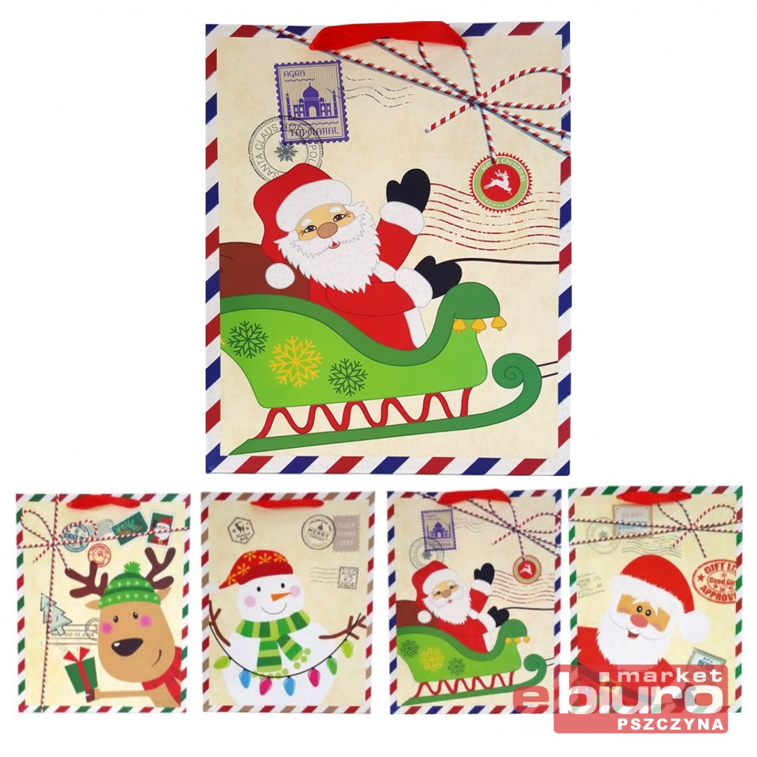 Torebka świąteczna.Torebka ozdobna wykonana z dobrej jakości papieru.Torebka jest zaopatrzona w uchwyty.Ładna grafika przykuwa wzrok.Może stanowić doskonałe uzupełnienie prezentu.Dostępne różne wzory. Rodzaj wysyłany losowo.Wymiary: 31.0 x 42.0 x 12.0 cm.