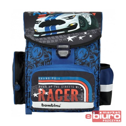 Lekki tornister marki Bambino wykonany przez producenta St-Majewski.Polecany szczególnie dla uczniów z klas 0-3.Tornister posiada dużą komorę z przekładkami na książki i zeszyty (mieści A4).
