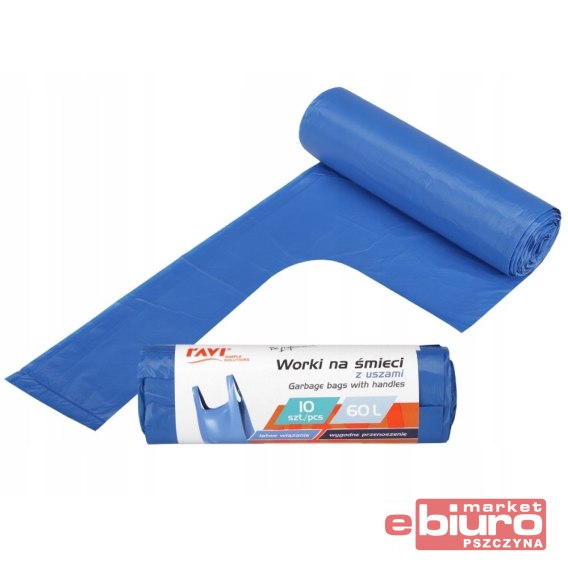 WORKI NA ŚMIECI Z USZAMI 60L 10 SZTUK NIEBIESKIE RAVI
