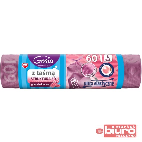 Worki na śmieci z taśmą struktura 3D zapachowe 60L GOSIA