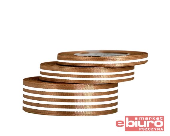 Wstążka satynowa w białe paskiWymiary: 25mm x 32m.Kolor: brązowy.Idealna do różnego rodzaju dekoracji.