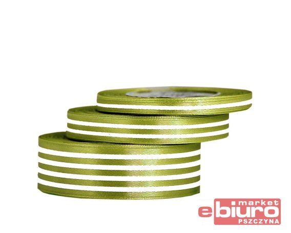Wstążka satynowa w białe paskiWymiary: 25mm x 32m.Kolor: ciemna oliwkaIdealna do różnego rodzaju dekoracji.