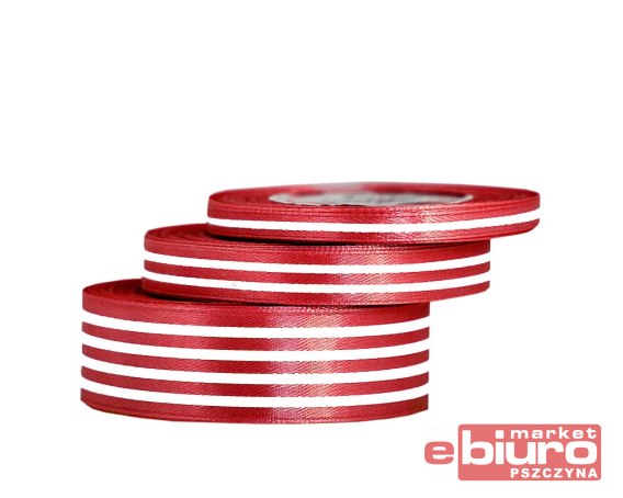 Wstążka satynowa w białe paskiWymiary: 25mm x 32m.Kolor: czerwonyIdealna do różnego rodzaju dekoracji.