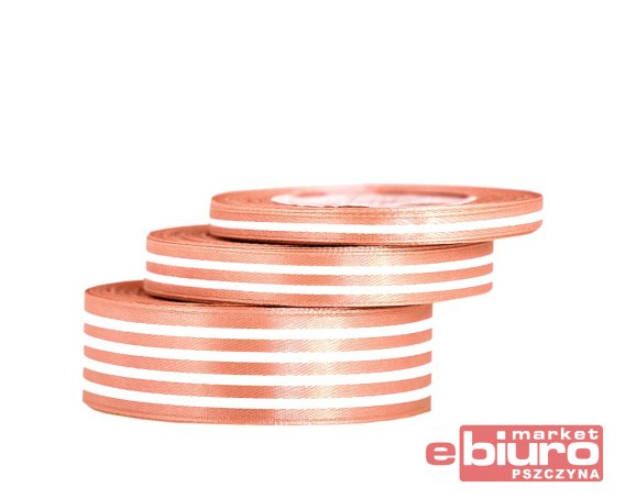 Wstążka satynowa w białe paskiWymiary: 25mm x 32m.Kolor: łososiowyIdealna do różnego rodzaju dekoracji.