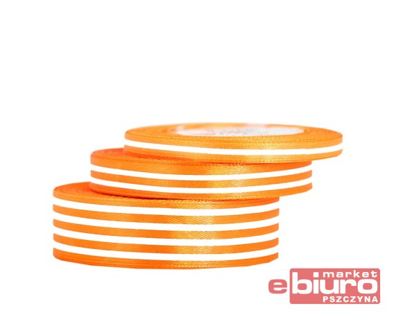 Wstążka satynowa w białe paskiWymiary: 25mm x 32m.Kolor: pomarańczowyIdealna do różnego rodzaju dekoracji.