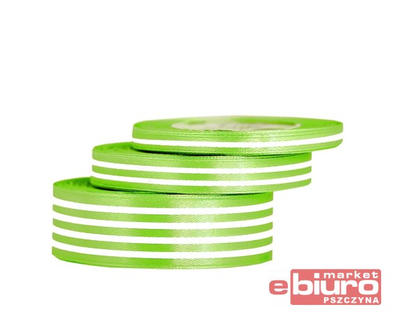 Wstążka satynowa w białe paskiWymiary: 25mm x 32m.Kolor: seledynowyIdealna do różnego rodzaju dekoracji.
