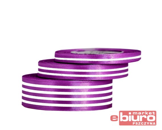Wstążka satynowa w białe paskiWymiary: 25mm x 32m.Kolor: śliwkowyIdealna do różnego rodzaju dekoracji.