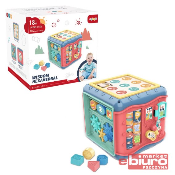 Kostka edukacyjna dla maluchów.Ciekawa i edukacyjna waga zabawka dla dzieci.Z każdej strony kostki znajduje się inna ścianka pełna zagadkowych wyzwań. Kostka pozwoli ćwiczyć małe dziecięce paluszki, nauczy dziecko logicznego myślenia, zapozna je z różnymi kształtami i kolorami.Zabawka idealna na prezent z każdej okazji.Produkt zapakowany w kartonowe opakowanie.Zabawka dla dzieci od 18 miesiąca życia.