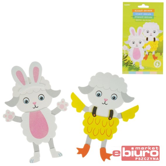 Dzięki piankowym elementom można stworzyć dwie urocze postacie owieczek.