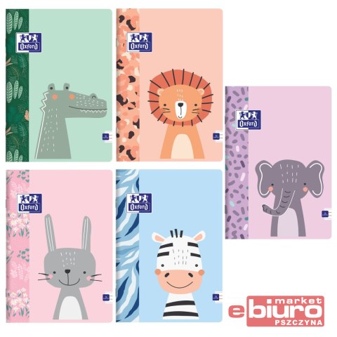 Kolekcja zeszytów Oxford Kids w zupełnie nowej odsłonie - połączenie wesołych zwierzaków i prostych, kolorowych wzorów.