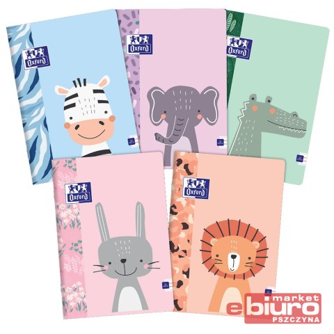 Kolekcja zeszytów Oxford Kids w zupełnie nowej odsłonie - połączenie wesołych zwierzaków i prostych, kolorowych wzorów.
